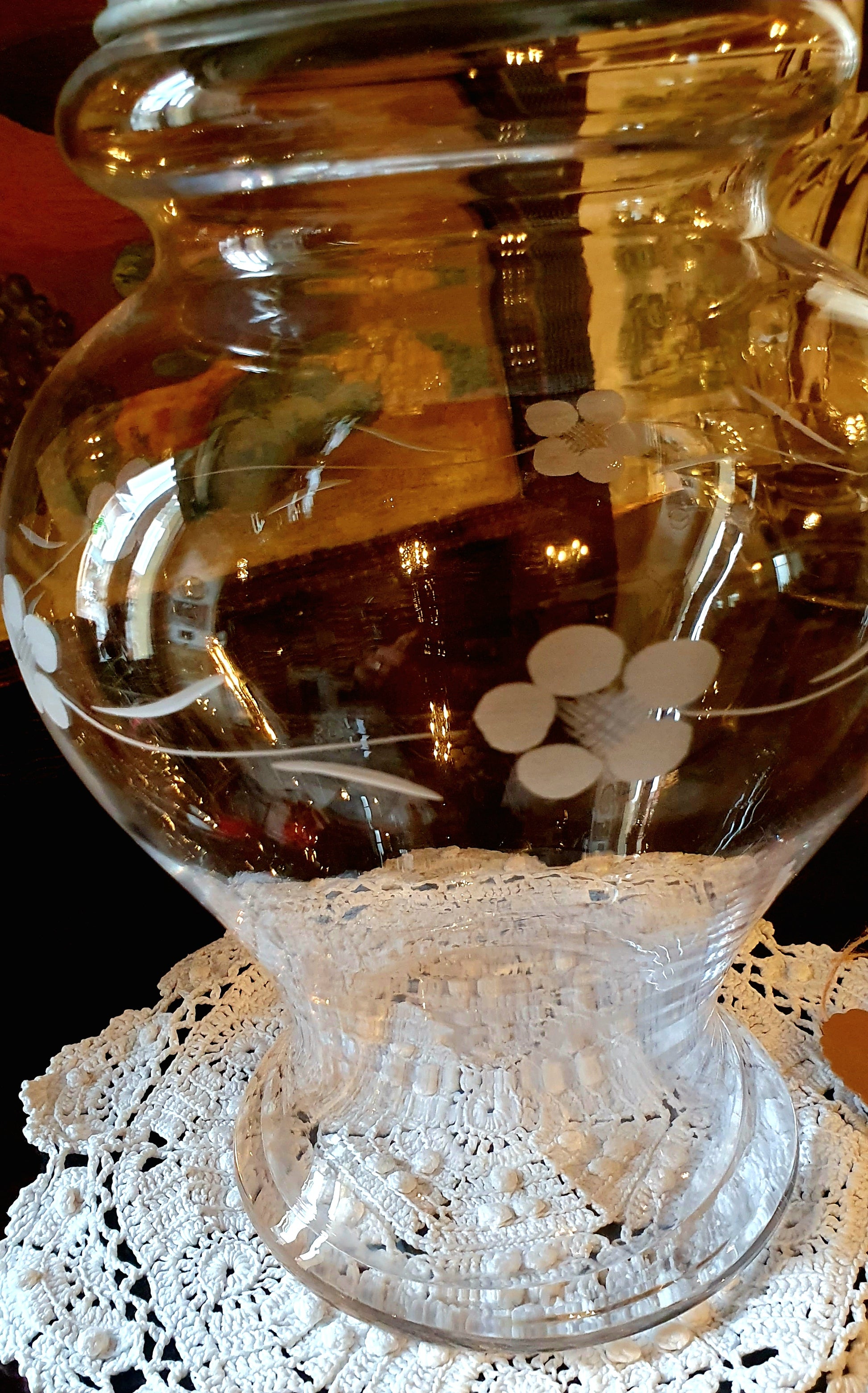 ANTICO GRANDE VASO IN VETRO SERIGRAFATO