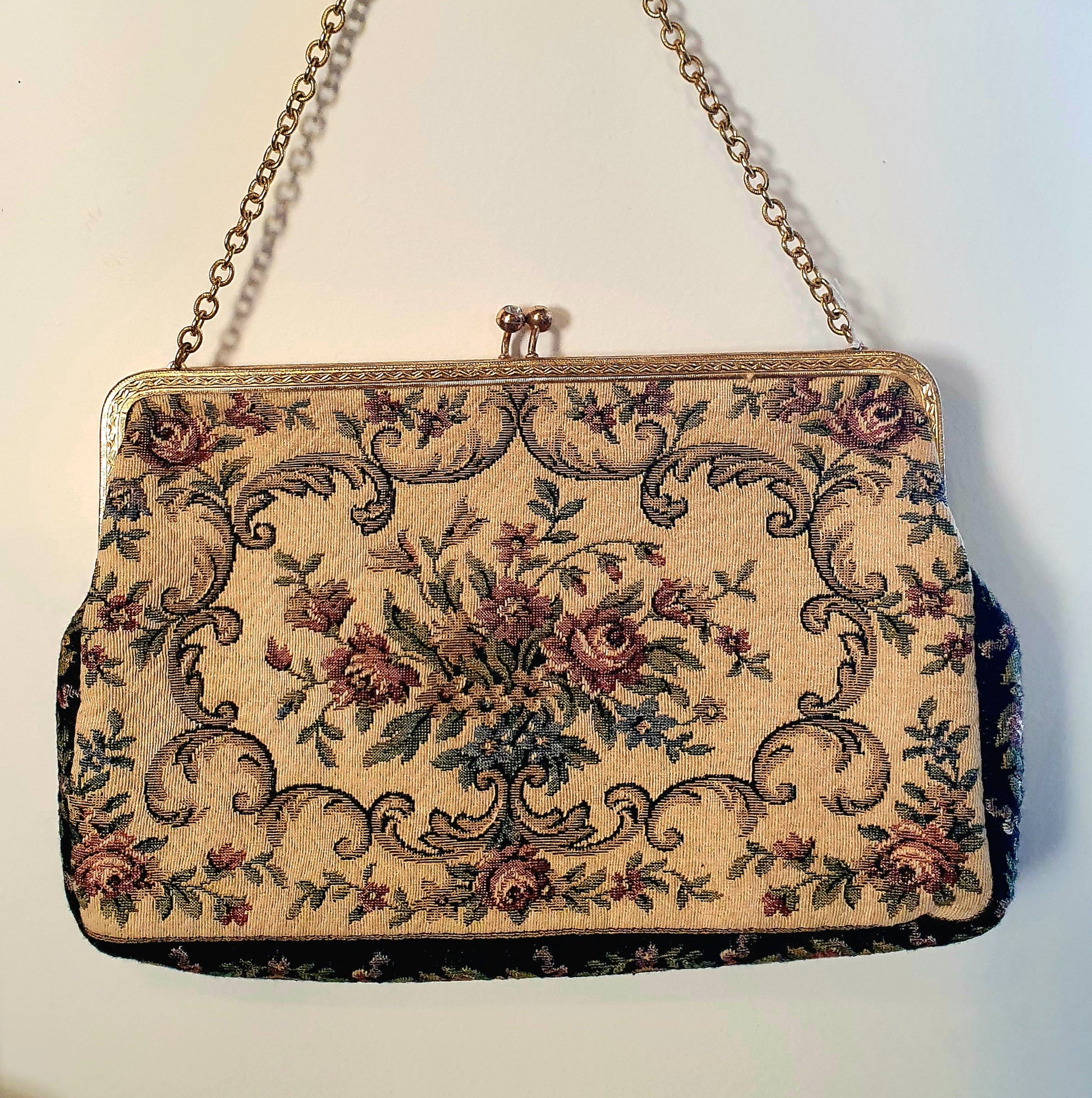 Borsetta in tessuto gobelin vintage anni '50.