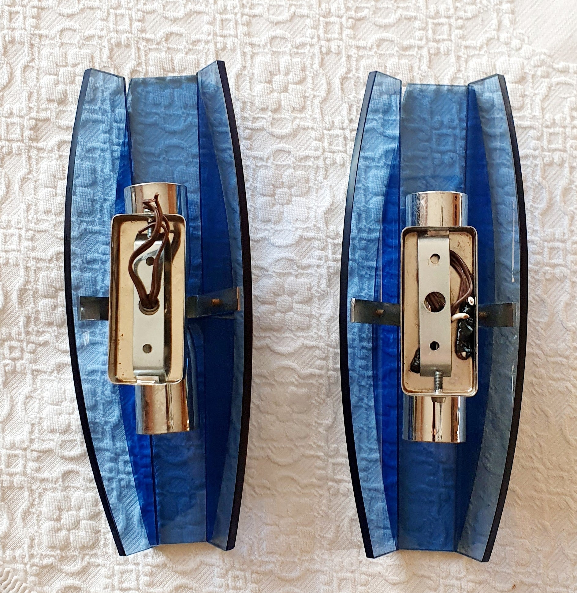 COPPIA DI APPLIQUE IN VETRO BLU DI VECA ITALIA ANNI '60 - '70