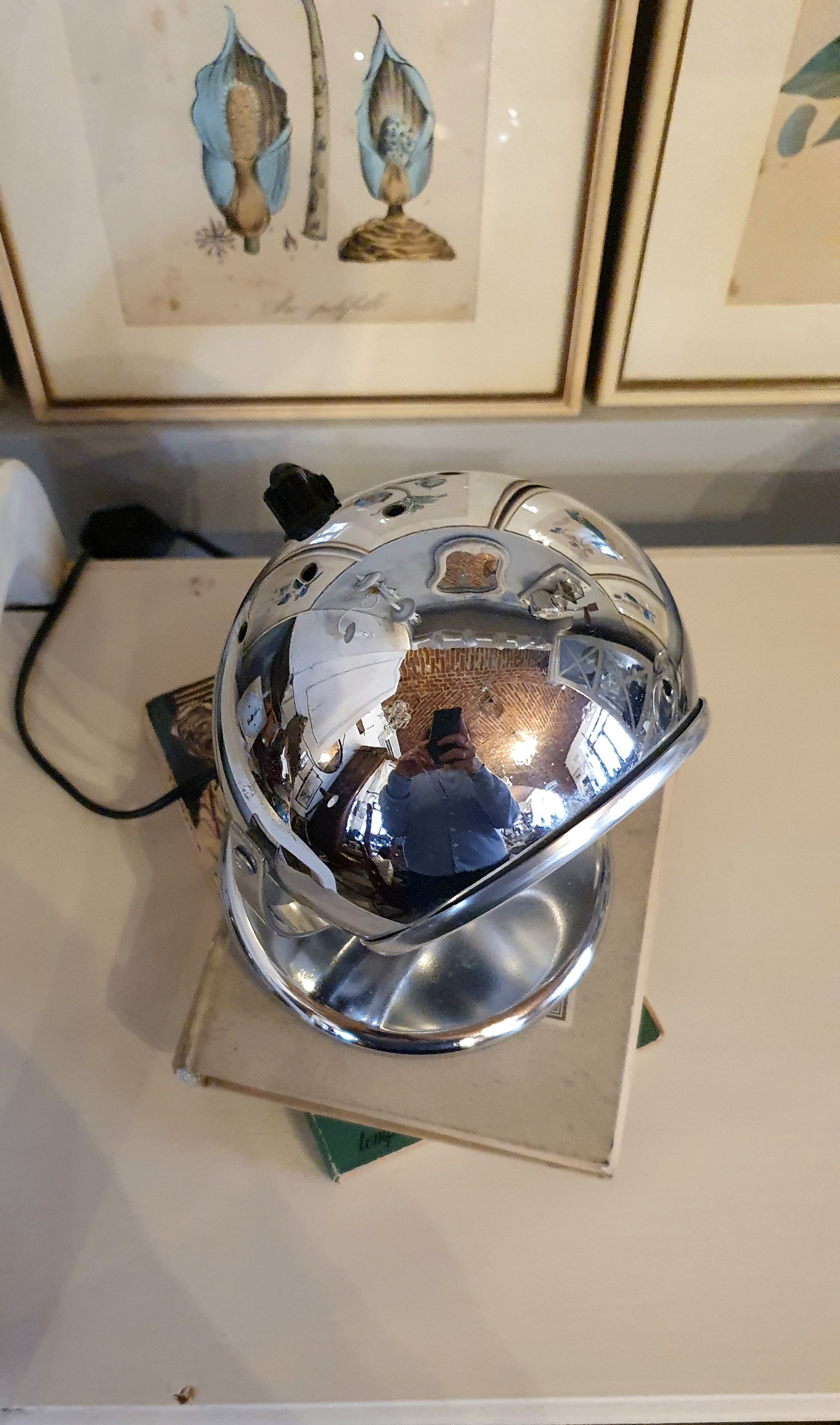 Modello Eye Ball in acciaio cromato e sfera orientabile.