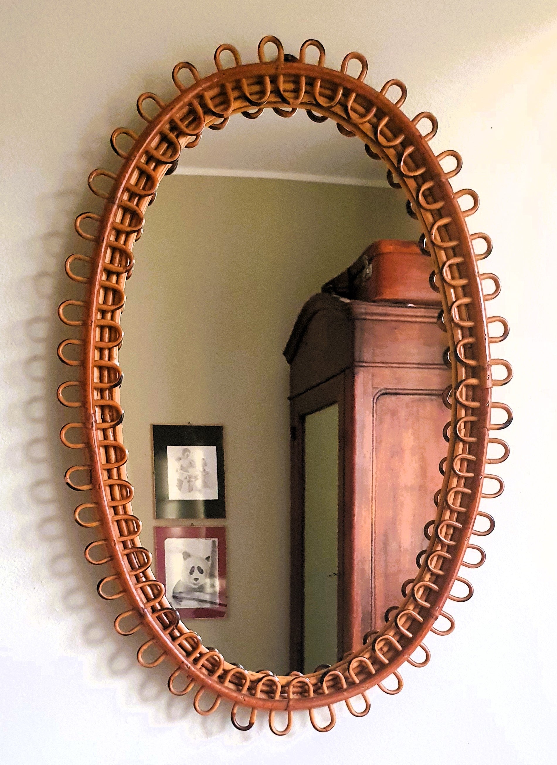 F. ALBINI SPECCHIO OVALE IN BAMBÚ E RATTAN ITALIA ANNI '60