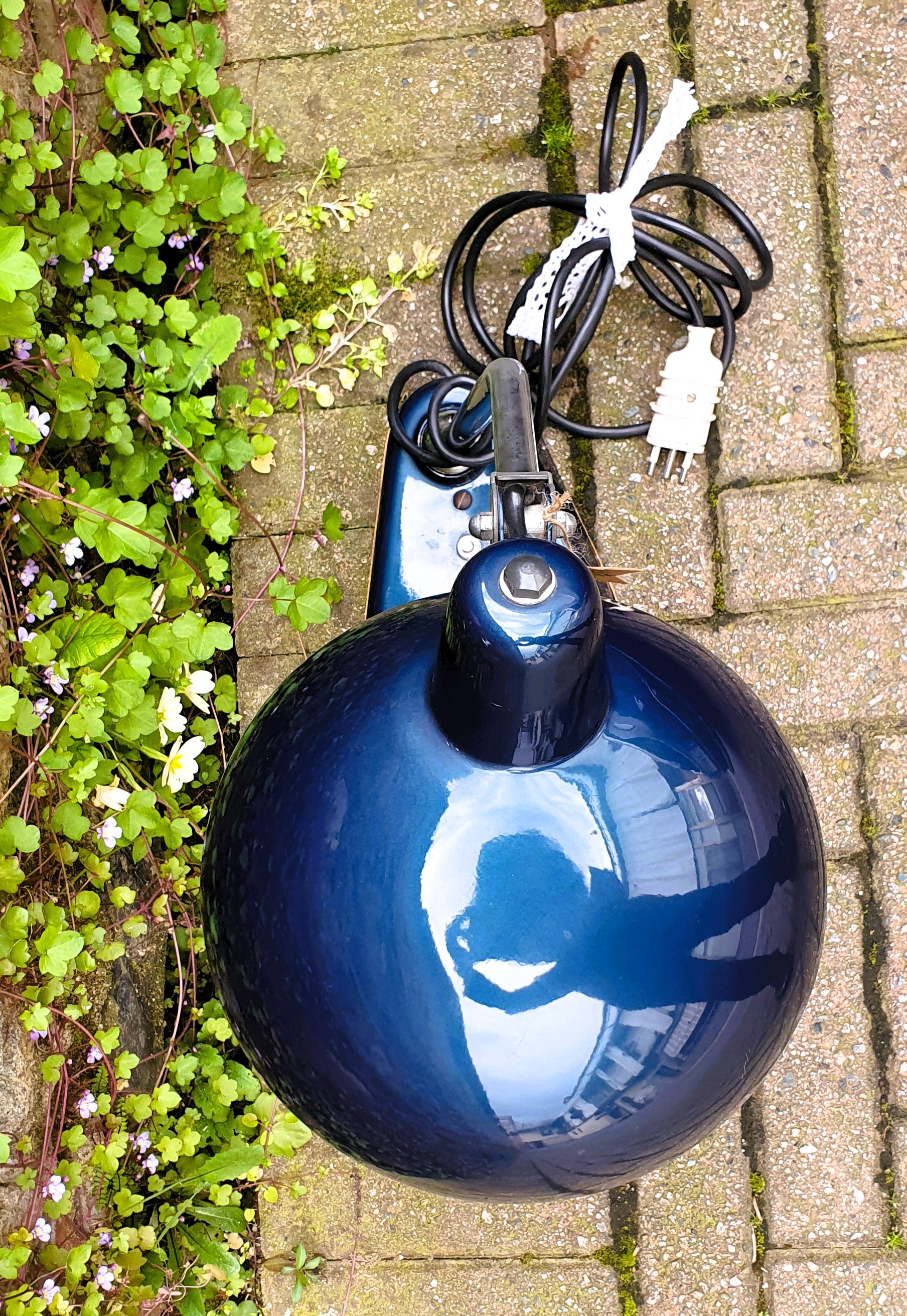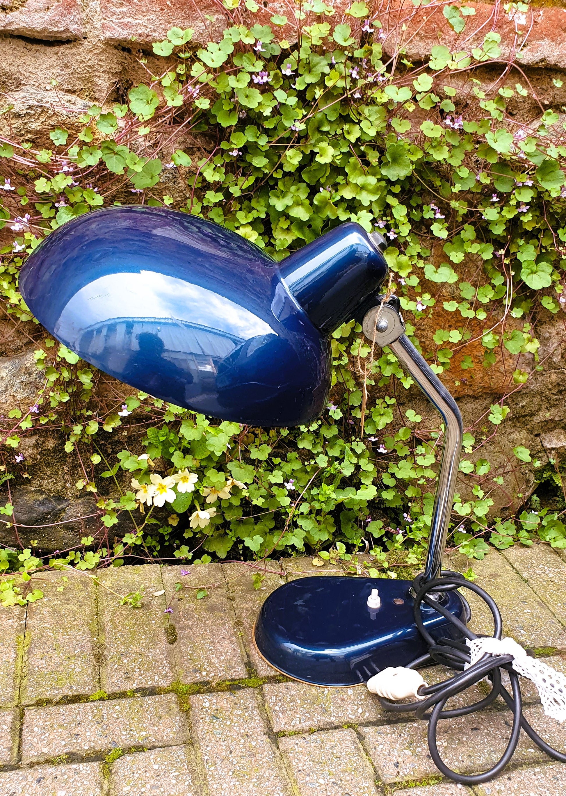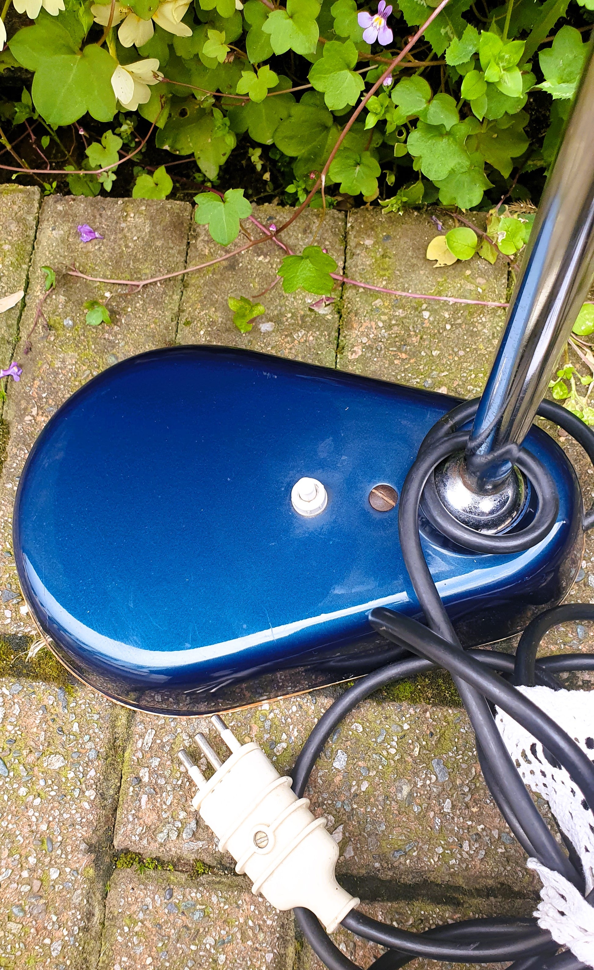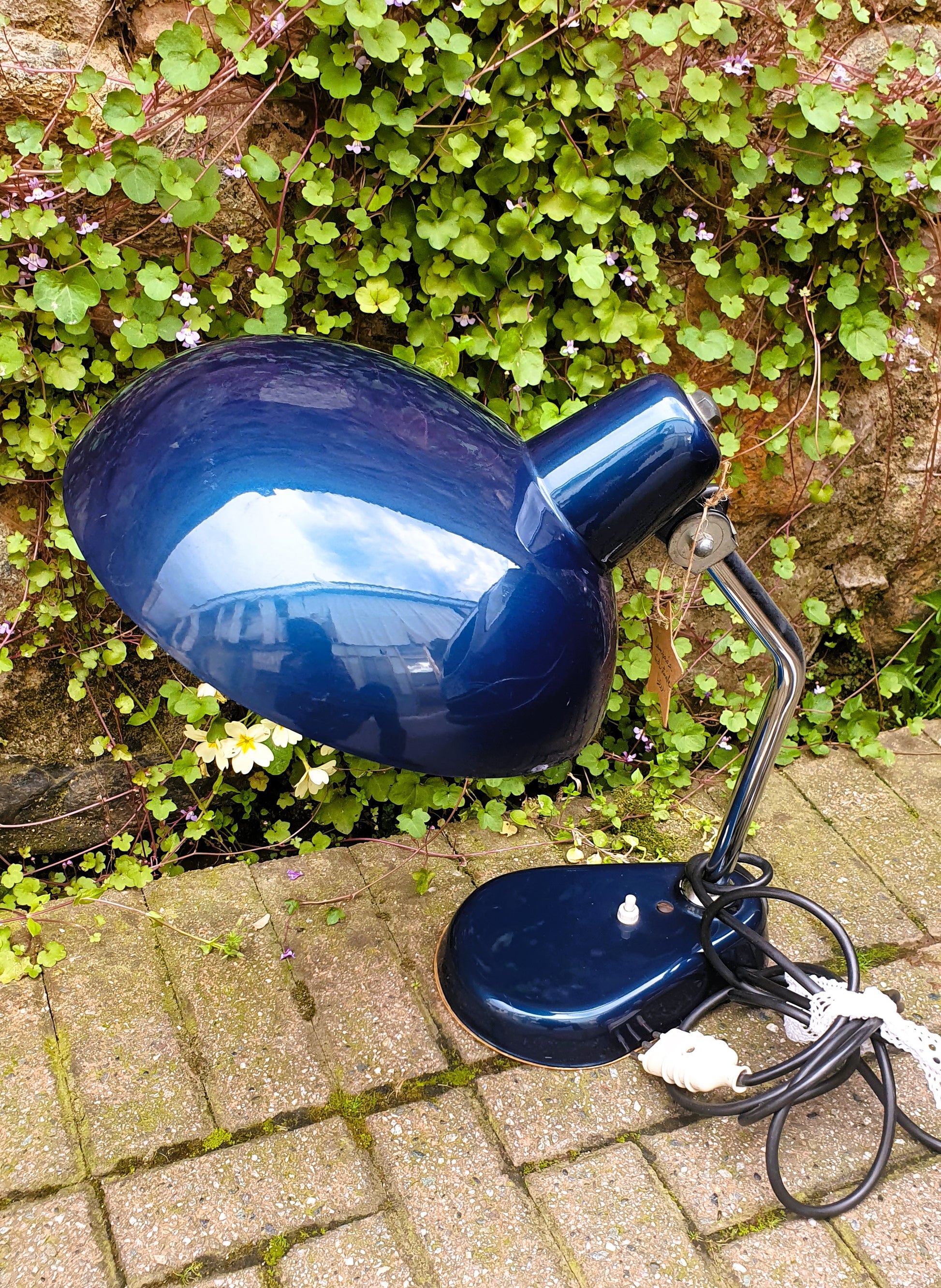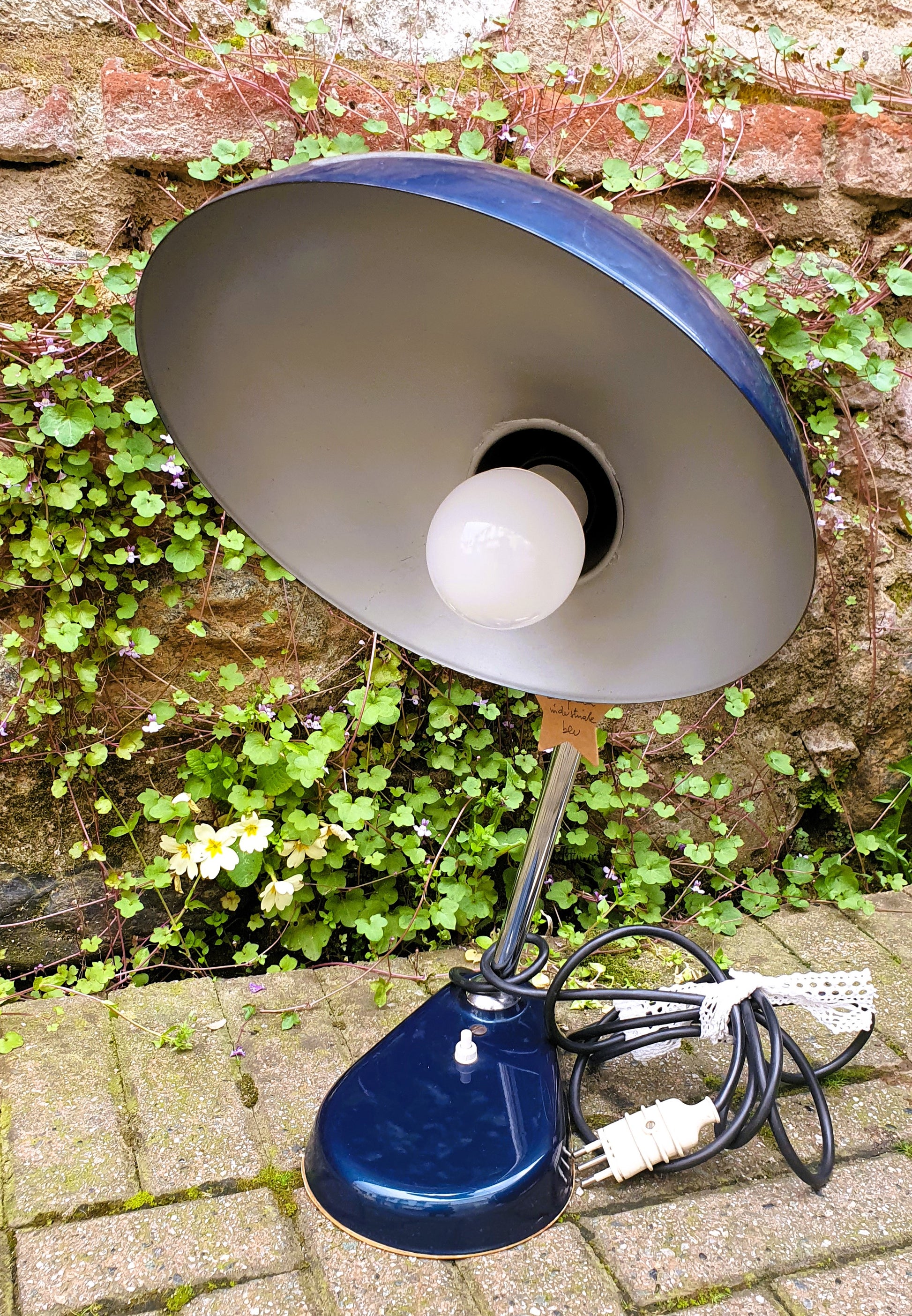 Lampada industriale cromata, colore blu.