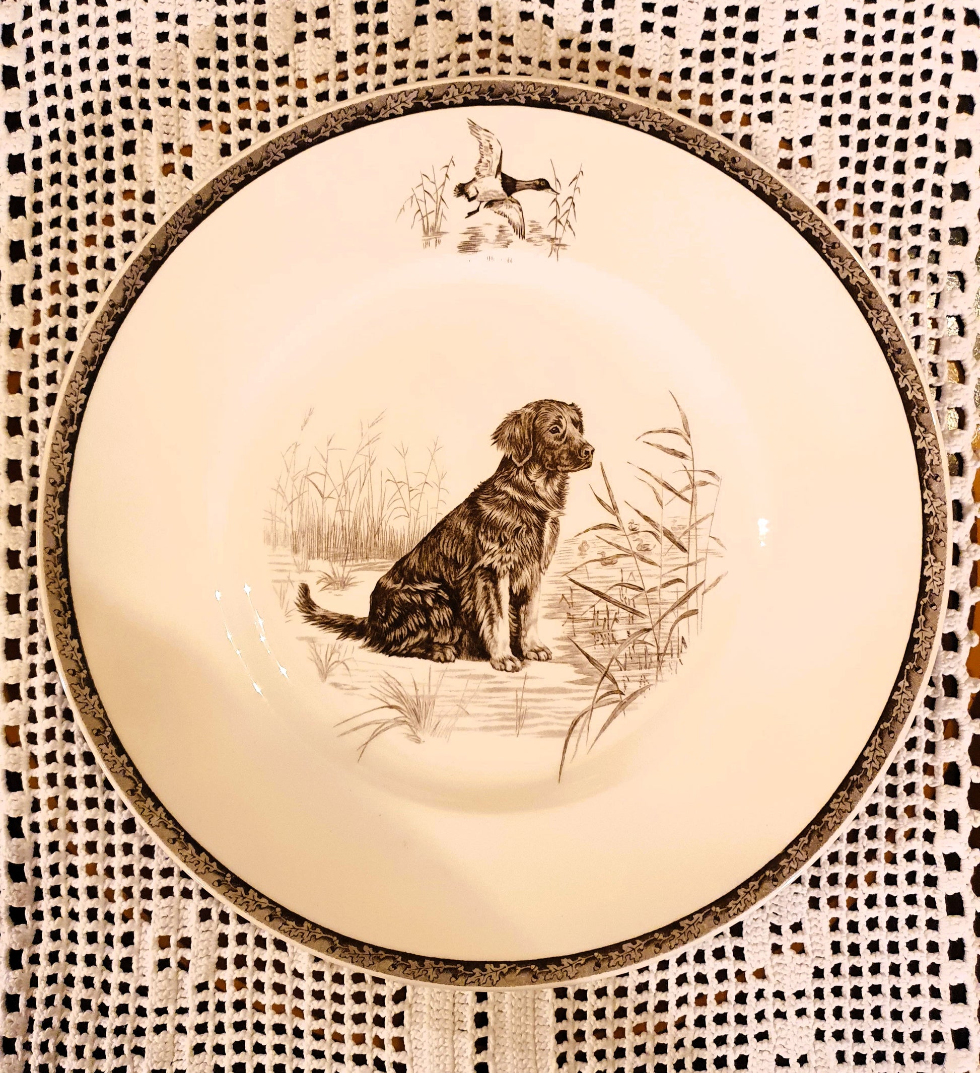 Piatto Wedgwood da collezione in fine porcellana disegnato da Marguerite Kirmse nel 1958, raffigurante un cane di razza Golden Retriever.