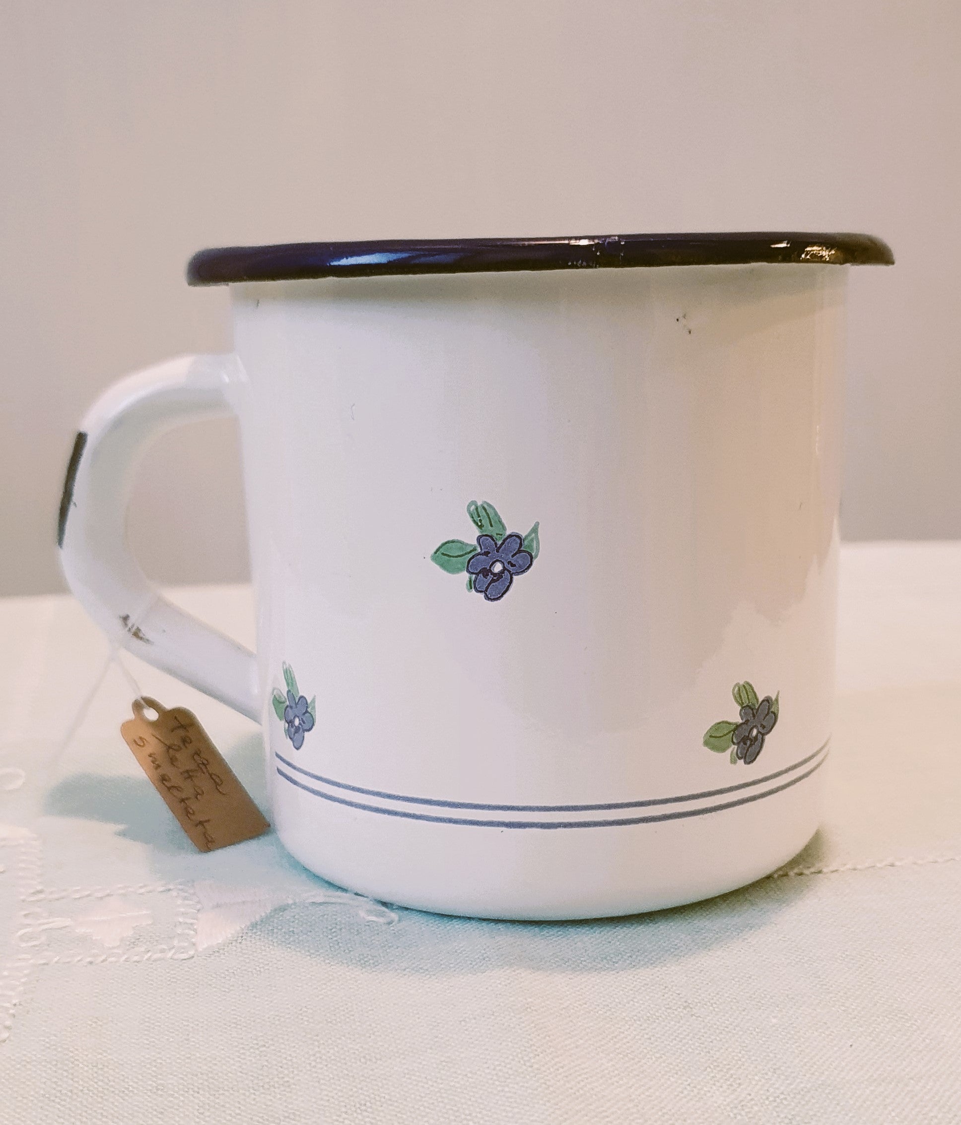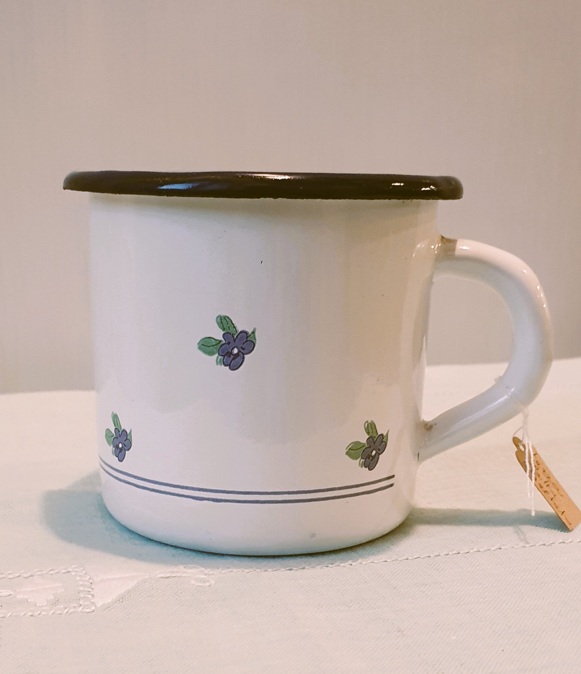 Tazza vintage in latta smaltata.